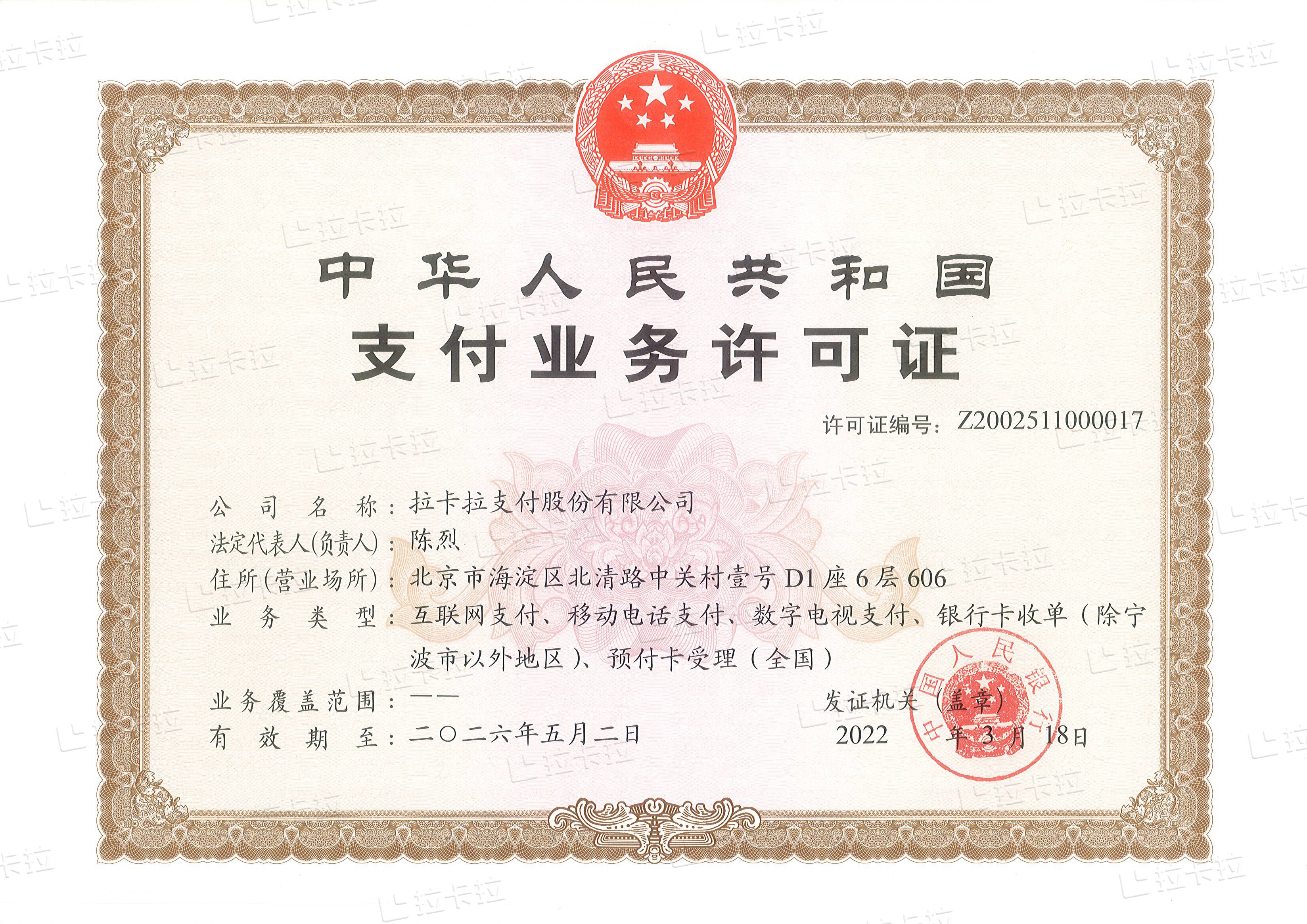 拉卡拉支付股份有限公司(以下簡稱“拉卡拉支付”)成立于2005年,是國內(nèi)領(lǐng)先的第三方支付公司,公司定位為“商戶數(shù)字化經(jīng)營服務(wù)商”。2011年首批獲得中國人民銀行頒發(fā)的《支付業(yè)務(wù)許可證》。2019年4月25日,拉卡拉支付在深交所成功上市,成為第一家登陸A股市場的第三方支付企業(yè),股票代碼300773。