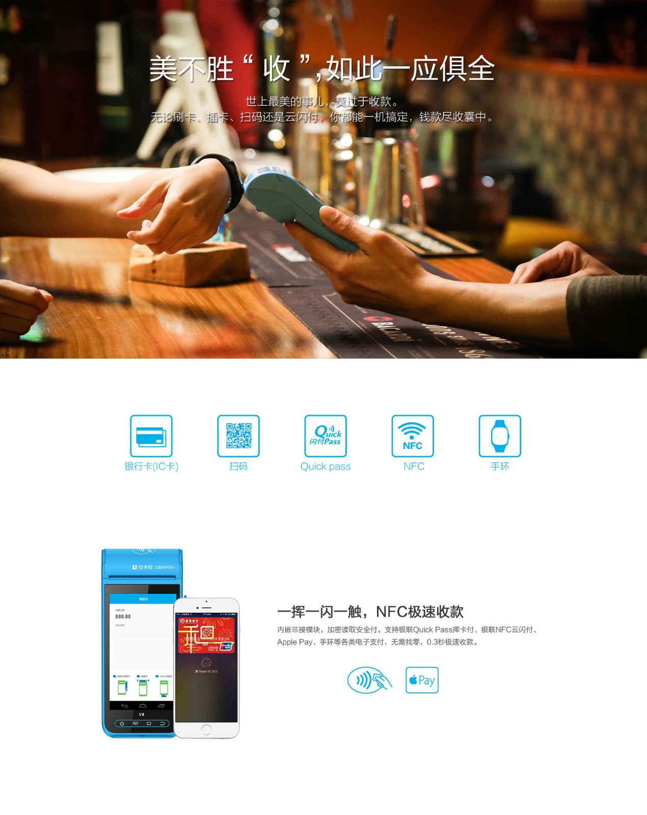 收款方式:刷卡、NFC閃付、微信、支付寶、二維碼" />